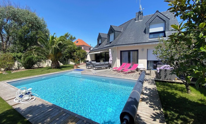 (Text automatically translated) Comfortable, large terrace of 30 m2, heated 28 °, modern decor, newly built pool, ideally located 100 m main beach close to all amenities, The furnished is rated 4 stars Gîtes de France Morbihan