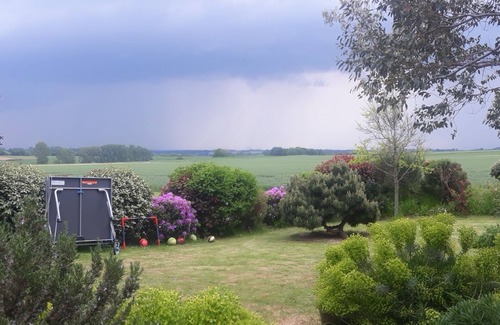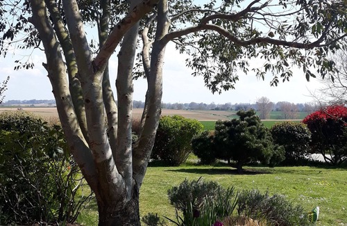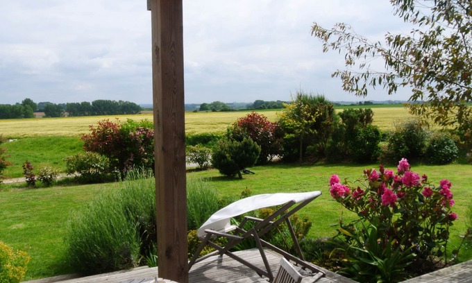(Text automatically translated) For lovers of the sea and the countryside, we offer our house, quiet, facing the fields of wheat and barley, a 5 minute bike ride from the beach .. Our house light wood features 3 bedrooms, a large living room with cathedral ceilings and a very appreciable stove for winter evenings, open kitchen enhances the warm side of all Large windows open onto a south facing terrace. 60m2 .. After a swim or a walk, you can relax on the terrace while the kids have fun in outdoor play area.