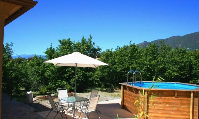 (Text automatically translated) Ideally located in the center of the eastern plain, you can explore the Costa Verde and Costa Serena. The quiet of the countryside, near the sea and its gentle landscapes and typical and unique mountain villages. Halfway between the seaside resort of Moriani Beach (north) and the ancient Aleria (south). This recent construction on a plot is located near a lake. Space resort to the simple, friendly and comfortable. Ideal for relaxation after a day of walk or swim! The small room furnished with a natural garden terrace will delight you for lunch or dinner. Discount for long. Unwanted inside the housing smoking.