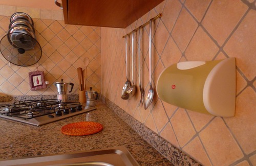 apartment composed of 2 bedrooms with double bed, living room with kitchenette and sofa bed, bathroom with shower, is 60 square meters. Large 20 sqm terrace. with barbecu and table with chairs, Apartment equipped with air conditioning, washing machine, television, linen. We are in perferia, 300m from the town center in a very quiet place, where you can relax and enjoy the silence and the smells of nature, and a few kilometers from the beautiful beaches of portu tramatzu, tuerredda, chia, the dunes bianchedi teulada and porto pino. A few km from the caves is zuddas.
