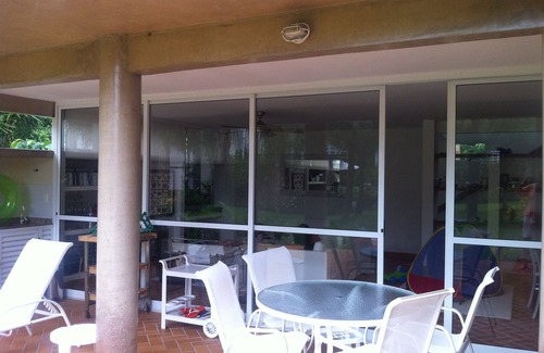 With award-winning architectural design, the house comfortably sleeps up to 12 people. There are four suites, all with air conditioning, plus bedroom and maid's bathroom, toilet, large living rooms and dining (integrated with a nice balcony) with fireplace. The balcony has barbecue with chimney for a perfect exhaust (no smoke during the barbecue). The house is fully equipped with modern furniture, new, two large refrigerators (one side by side), washer machine and dryer, spaces for four cars. Some steps across the lawn and you will be one of the best beaches on the north coast of São Paulo (12 km after the Riviera de São Lourenço), an Atlantic forest area completely preserved and listed by IBAMA. The beach is flat, ideal for sports such as tennis, jogging, cycling. The sea is calm and clean. The 200 meters is the river Guaratuba, clean and perfect water for a bath of fresh water and the practice of sports such as stand up paddle and kayak. The home is in the gated community of Pontal Guaratuba (with 24 hour security), near the open court The condo Costa del Sol.