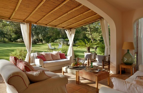 Informal garden and lawn bordered by a pine wood and the typical mediterranean vegetation. A private path leads through the dunes to the sea where guests will find a private cabana equipped with sun beds and parasol.