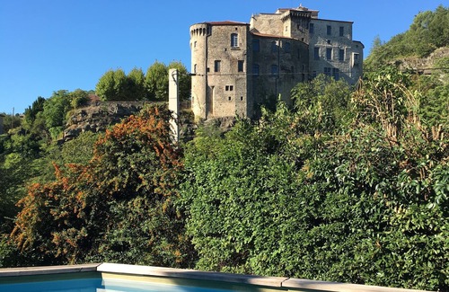 Near to mideval village, ideally located in font of the casttle, with larges surfaces, terraces, trees, swiming pool.