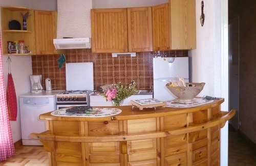Detached house at 600 m from the sea with 2 bedrooms bathroom and separate wc open kitchen with dishwasher, closed concrete courtyard ornamented with a rose window, in front, allowing the parking of 2 cars, shaded lawn at the back with swing . Ground of 709 m2 closed by hedge and portal. Quiet site conducive to rest Sandy beach 10 minutes walk.