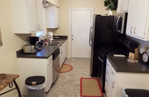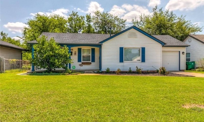 Nicely decorated 2 Bedroom (Queen beds) home. All the essentials including all utilities, tv with 50+ channels and Wi-Fi. Big fenced backyard, Pet Friendly. Plenty of parking available. Laundry room with full size washer and dryer. Located just minutes from shopping, restaurants (Starbucks) and a 12 minute drive to downtown Oklahoma City. Doggie park nearby, Lake Hefner and plenty of walking trails. We live just down the street, great neighborhood.