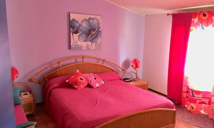 The kitchen is equipped with all comforts with a large and welcoming dining area with a large table, colorful living room with a sofa bed that can accommodate one more person if desired, the house as a whole is bright and welcoming with a small garden but that offers the parking space for at least two cars.