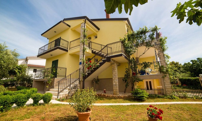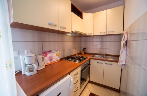 The apartment “Jenny” is air-conditioned, with TV satellite, has two separate bedrooms, has a living room, kitchen and toilet-slide, is highly furnished, and you can also find dishes and bed linen. The apartment has a terrace, parking space. In the garden there is a grill with a terrace. The house was renovated in autumn 2013. In the house there is a pleasant calm and good vibrations.