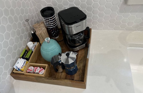 Both bathrooms are tastefully appointed and stocked with fresh towels and essentials to enhance your stay. For added convenience, a washer and dryer are also available, making it easy to keep your swimwear fresh and ready for your next pool day. You’ll find blue towels for the pool and yellow towels for the beach in case you need them.