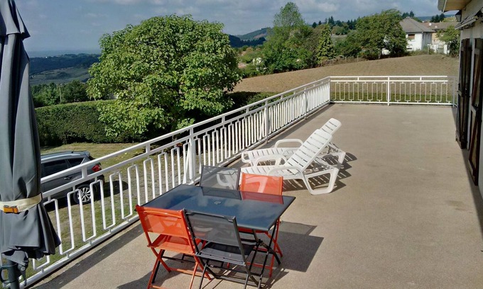 Joint house of 90 m² with panoramic views of the chain of Puys, 2 bedrooms (2x140), 1 living / dining room with 1 bed, 1 fully equipped kitchen (dishwasher / stove / grill / microwave oven ...), 1 bathroom with washing machine, separate toilet, 1 terrace of 60 sqm with barbecue and garden furniture.