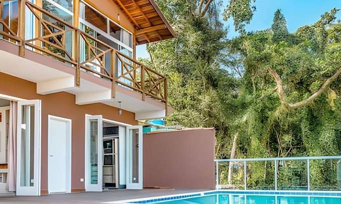 Casa da Feiticeira is ideal for families and groups of friends who want to enjoy Ilhabela in comfort and style. Just 500 meters from Praia da Feiticeira, the house accommodates up to 9 people and offers a complete leisure area with swimming pool, barbecue and sun loungers. Take advantage of the excellent location and explore the island on foot!
