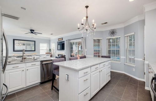 Kitchen: Fully equipped w/ stainless steel appliances, Keurig coffee maker, dishware & flatware, cooking basics, Crock-Pot, toaster, island w/ seating