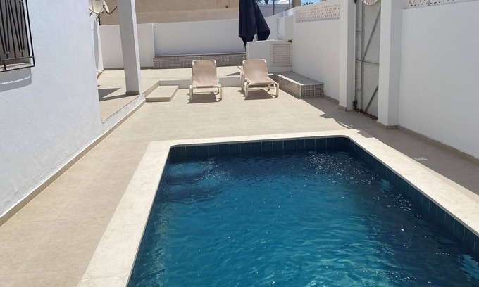 Yes, this Houmt Souk villa has a swimming pool. Check the Facility Overview section for details about the pool and other available facilities.