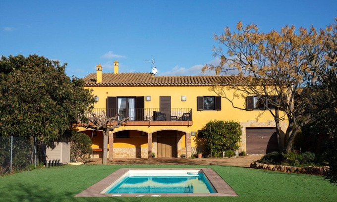 2 km from the Ap-7 motorway exit, less than 20 minutes from the maritime town of Escala and the Ruins of Ampurias; and thirty minutes from Girona capital. House to disconnect and have contact with nature, there are small paths with forests next to the farm. At night noises are heard, it is a pleasure in summer to go out to the terrace and enjoy the silence. Well-conditioned house, with wifi, TV with internet, air conditioning and heating, washer and dryer, garden with pool and hammocks for summer, and chillout for winter or summer on the terrace, with exit from the kitchen and views of the garden, to the fields and the bell of the town .. We also have space for children's games, with darts and table tennis.