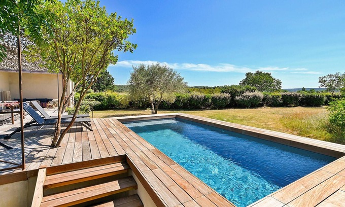 Look forward to this inviting vacation home with private outdoor pool in Blauzac