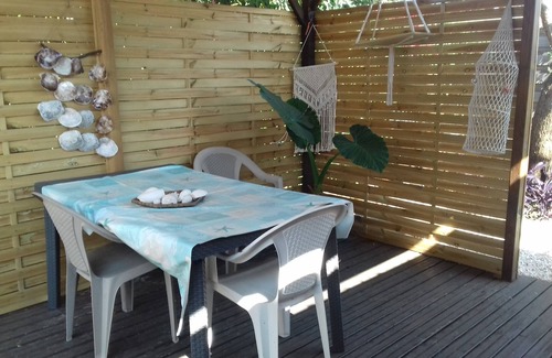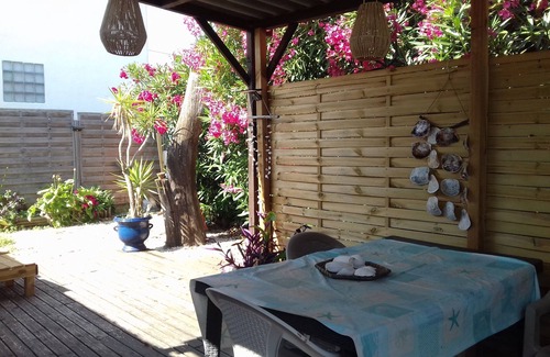 for two people and two children, an equipped kitchen; Bathroom ; Dining Area ; living room with a sofa bed; a room bed 140; : terrace with a table and four chairs; sunbathing: the house is a real road to 5 minutes walk from the sea and shops: possible to take your bikes: strollers; his dishes: is on the dish of banyuls