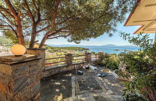 The house is located 100 meters from the beach.It has big garden with great view on the sea.It is suitable for the summer as it is very close to a nice and clean beach. Especially if you have children you feel secure as it is a quiet village and the beach is safe and clean.