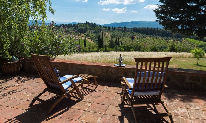 Typical Tuscany farmhouse 15 minutes from Florence with wonderful views over the Chianti, on vineyards and olive groves, very secluded and quiet, suitable for a romantic and unique stay. The house is furnished in Tuscan style being a former barn, has been recently renovated and is truly a jewel for the interior architecture and for the beautiful view, 75 sqm. It is suitable for 2 people.