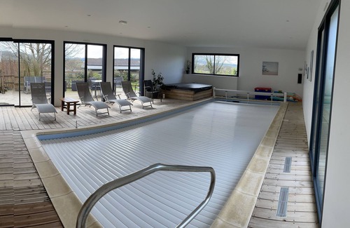The swimming pool and the spa are in the house, in a heated room of 80 m2, with deckchairs.