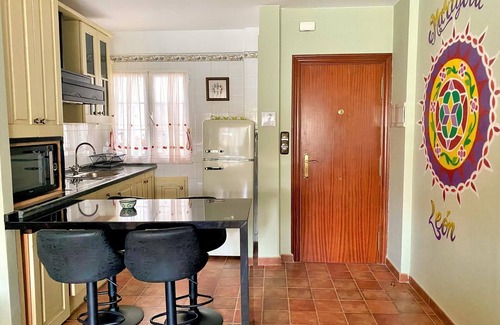 Cozy apartment located in front of the wall and the Basilica of San Isidoro, ideal for visiting León and the surrounding area with family or friends. The house is fully equipped and consists of two rooms, one with a double bed and the other with a 90 cm bed. The kitchen has everything necessary for its use: washing machine, vitro, microwave, oven, coffee maker, toaster, ... etc. The area around it is ORA and it is easy to park.