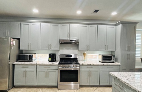 Unwind in Houston, next to Richmond and Sugar Land cities at this lovely house. With 5 bedrooms including 2 king beds and 5 queen beds, this property offers plenty of space for guests to relax. Enjoy the 4 bathrooms equipped with amenities like shower and jetted bathtub. Additional spaces like a living room with a sofa bed and recliner sofa provide even more comfort. We'll be available to answer any questions while you stay at our place.