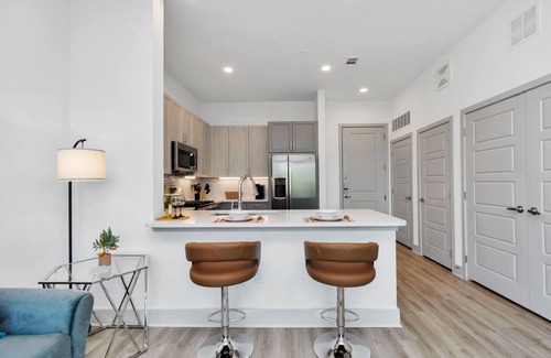This luxurious king suite is a modern upscale community situated in Houston's leading business districts in River Oaks, very close to Washington Corridor and Midtown with easy access to all of Houston's best shopping, entertainment, restaurants, and nightlife. Our units are equipped with the latest smart home features and we offer extraordinary amenities including an expansive fitness studio, micro offices, and a sparkling swimming pool with grilling stations and so much more!