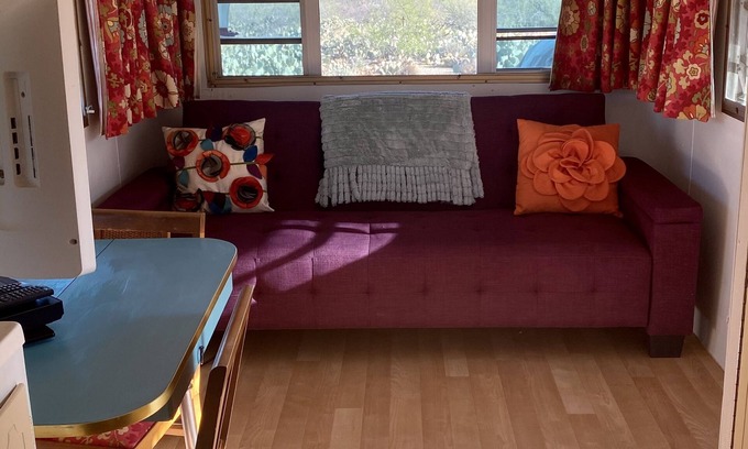 Enjoy the panoramic views of the Catalina and Rincon Mountains. Lounge on a cute patio with a chimenea. Vacation on 4 acres in the sonoran desert with an abundance of wildlife: javelinas, coyotes, bobcats, mule deer and a large variety of birds. Our property is close to all amenities: restaurants, grocery stores, movie theatre, golf coarse and much more. I-10 is 20 minutes away where you can hope on the freeway and go to the wine country, Bisbee, Benson, Tubac and Nogalas Mexico. The vintage trailer has all the amenities you would need. Its is very cozy and cute. We have tried to preserve the original vibe of the trailer.
