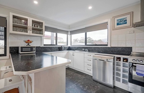 Just steps from Wentworth Park and Little Howrah Beach, this charming retreat is an ideal base for relaxed holiday living. Inside, rest in the main lounge or step down to a second living area with a rustic bar—perfect for cocktails or catching the game. Outdoors, the spacious backyard features a shaded pergola with cushioned seating, BBQ and TV, creating an all-season alfresco haven. With climate control and off-street parking, this is your seamless coastal escape just minutes from Hobart’s CBD.