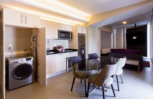 HS HOTSSON Long Stay CDMX Condesa Sur offers 103 air-conditioned accommodations with washers/dryers and laptop-compatible safes. Beds feature down comforters and premium bedding. 55-inch flat-screen televisions come with cable channels. Accommodations at this 3.5-star hotel have kitchens with microwaves, separate dining areas, dishwashers, and coffee/tea makers. Bathrooms include showers with rainfall showerheads, complimentary toiletries, hair dryers, and toothbrushes and toothpaste.