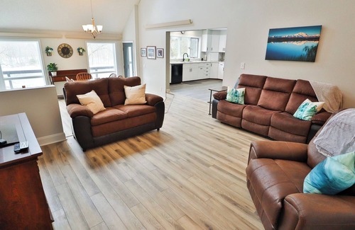 Located just a few minutes from West Mountain and a short drive to Lake a George, this home is the perfect getaway with plenty of fishing opportunities on the river, wildlife viewing in the bay, and endless sunsets. Hudson River Retreat is within a 15-minute drive to over 100 miles of mountain biking trails ranging from beginner to expert, 5 miles from Sky Zone and Rock Sport, 20 minutes from Saratoga Race Track, and 10 minutes from Six Flags Great Escape.