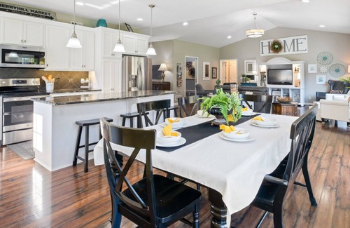 Welcome to your dream wedding accommodation at Beautiful 10 Beds, Lake/Waterpark/Walk/Bike Trails - 1 Mi, Attractions Nearby. This stunning property, boasting 4,000 square feet of elegant living space, is designed to accommodate large groups, making it perfect for hosting your special day. With ample room for family and friends, you can create the wedding of your dreams while enjoying luxurious amenities in a warm and inviting atmosphere.