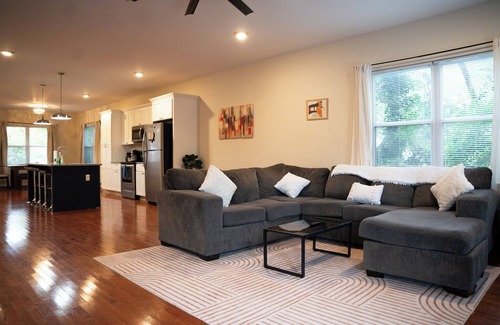 Enjoy modern comfort just steps from Bryd Park, Boat Lake/Swan Lake, and top local dining. This 3-bedroom, 3.5 bath home is perfect for families, and groups. Each room with its own en suite bathroom :)