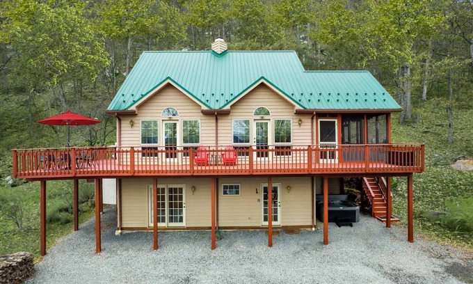 - CLOSE to town🌳Double Decker Screened Porches💦POOL 🥾Hike to Brewery🌟4 BED 4 BATH🌷