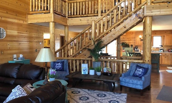 Huge private Cabin located on 3 acres, sleeps up to 30 people! Perfect for Multiple Families to gather and make memories! 6 Bedrooms plus a spacious loft for comfortable sleeping. Huge backyard with two campfire pits, hot tub, and walking trails. Minutes away from Castle Rock Lake - Wisconsin’s 4th Largest Lake! Easy 25-minute drive to/from Wisconsin Dells!