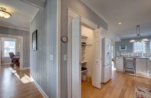 The second living level has two primary bedrooms and a laundry room with a utility sink. The first bedroom has a king bed and a private bath with a jacuzzi tub. The second bedroom has a king bed, a single bed, and a private bath. Throughout the home are a total of six TVs for private, or family, movie breaks. At the top of the stairs on the third living level, you will find a quiet loft space with a double sofa bed and access to the deck with a hot tub and spectacular views. Two additional spacious primary bedrooms with queen beds and private baths are also found on this level. From kayaking and crabbing fun in the backyard to taking a break in the large screened porch, you are sure to spy vacation victory at Spy Dog!