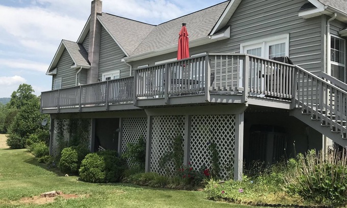 Huge deck, grill, stunning mountain views EV charging station available is located in Lovingston. Huge deck, grill, stunning mountain views EV charging station available provides accommodation, featuring Security/Safety, Bedding/Linens, Hot Tub, among other amenities. This House features Security/Safety, Bedding/Linens, Hot Tub, to make your stay a comfortable one.