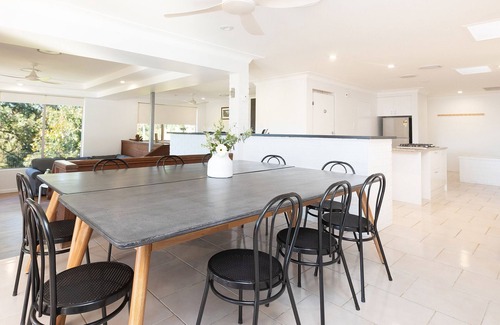 Outside the house, you'll be able to spend the day in the secluded outdoor entertainment area relaxing around the large pool, cooking on the new BBQ in an undercover area, eating and drinking in the sun at the 18-seat outdoor dining table, laying out on the manicured grass and listening to your music. There is even a separate bathroom w/ shower plus toilet accessible from this area, so no need to run through the house.