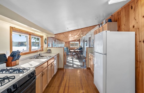 The Huge Lake House boasts remarkable amenities that cater to both comfort and celebration. Enjoy exclusive access to 110 feet of sandy beach, where you can host a lakeside ceremony or cocktail hour as guests bask in the warm sun. After the vows, gather around the cozy fire pit for story-sharing and marshmallow roasting under the stars, or take advantage of the three expansive decks offering panoramic views of the lake. Inside, the house features elegant furnishings, including a stone fireplace, hardwood floors, and spiral staircases, providing a blend of historic charm and modern convenience. With a fully stocked kitchen and ample living space, you can effortlessly plan your wedding weekend and accommodate approximately 20-25 guests.