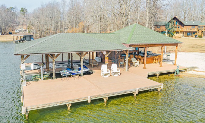 Huge Lakefront Home with Private Hot Tub, Dock, and Pickle-Ball Court - Perfect for Weddings
