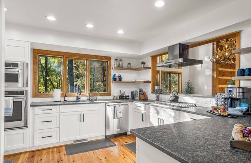 - Modern Comforts: Featuring a fully equipped kitchen, generous dining spaces, and keyless entry, this cabin combines rustic charm with modern updates for an inviting atmosphere throughout your wedding celebration.