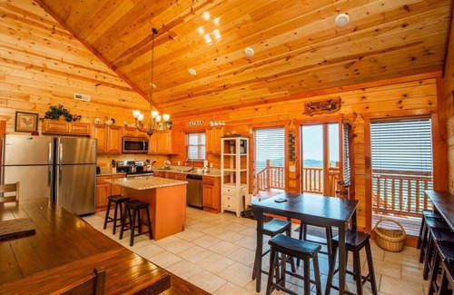 Welcome to your dream wedding venue at the Huge & new; Pool house, Game room, Theater, Views!, a stunning 6000 sqft cabin in Sevierville, Tennessee. This newly constructed property offers an enchanting backdrop for your special day, featuring breathtaking 360-degree views that will leave you and your guests in awe. With ample space for up to 32 guests, this luxurious cabin is designed to create unforgettable moments while providing all the comforts of home.