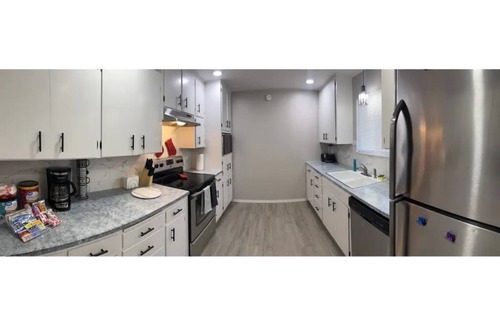 Amenities to list a few: fully stocked kitchen, full bathroom, private covered patio, private fully fenced in backyard, all bedrooms with closet, four beds, living room with SUPER comfy couch (can sleep two), 65” smart television, 40” smart television in the king sized bedroom, free parking, free wifi, refrigerator/freezer, stove/oven, free washer and dryer in unit, heating, storage, and more.
