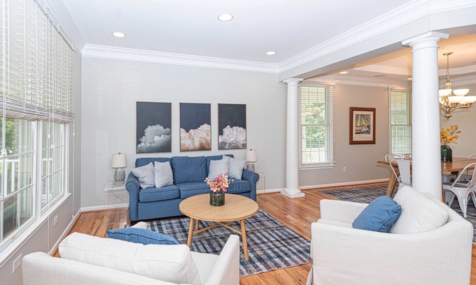 Welcome to your perfect family retreat! This expansive private home offers an ideal setting for creating lasting memories with your loved ones. With the capacity to comfortably sleep 15 guests, this spacious haven ensures everyone has their own space while enjoying shared moments. The beautifully appointed kitchen, overlooking the family room, is the heart of the home – a place to gather, cook, and connect.