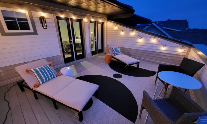 Roof Top Patio - off Bedroom 1. Enjoy looking out at the city or river views. Relax on the recliners while sipping wine or reading a book. Sit in the wicker seats sipping morning coffee or espresso from the Nespresso maker.