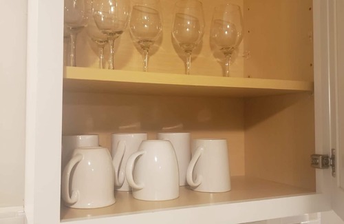 The house comes with a large kitchen and dining room. The kitchen has a sink, refrigerator, microwave, stove and oven, full set of dishes, dishwasher, and Keurig coffee maker.