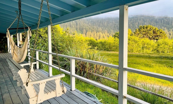 Welcome to your humble stay on the Humboldt Coast. Wake up to coffee on the porch swing with open views of Redwood National Park and Redwood Creek. Then walk, ride or drive past the elk herd to old-growth redwoods, or follow the creek to the mighty Pacific with miles of flat beach. Spend more time exploring with the best access to giant redwoods, breathtaking beaches, and phenomenal fishing. Return home to complete vacation mode with a game of cornhole, a campfire, and a hot tub under the stars.