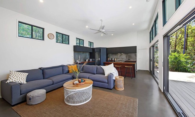 Escape to a idyllic Retreat on stunning acreage in Sunshine Coast Paradise. Embrace freedom in this private haven. Your modern oasis offers seamless indoor/outdoor living, perfect for sunrise vistas from your balcony. Acres of lush vegetation, forest trails, and tranquil spots to unwind. Convenience meets nature - flat parking, turn-around bays for larger vehicles, and with Montville/Palmwoods only moments away. Experience location, luxury, and tranquility – your serene getaway awaits..