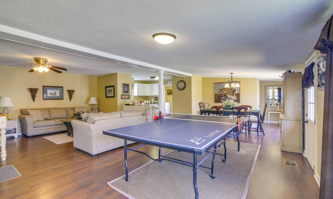 Answer the call of the great outdoors with a stay at this Tunica vacation rental! With the lake right in your backyard, this 3-bed, 2.5-bath cabin is a hot spot for fresh-air fun — like duck hunting, reeling in bass and crappie, and boating. After spending all day outside, fill empty bellies with a fish feast, reignite old rivalries with a game of ping-pong, or try your luck at Gold Strike Casino Resort.
