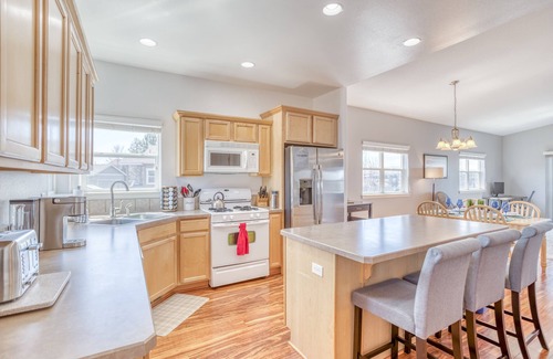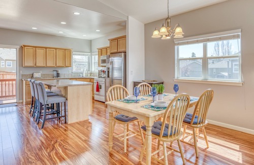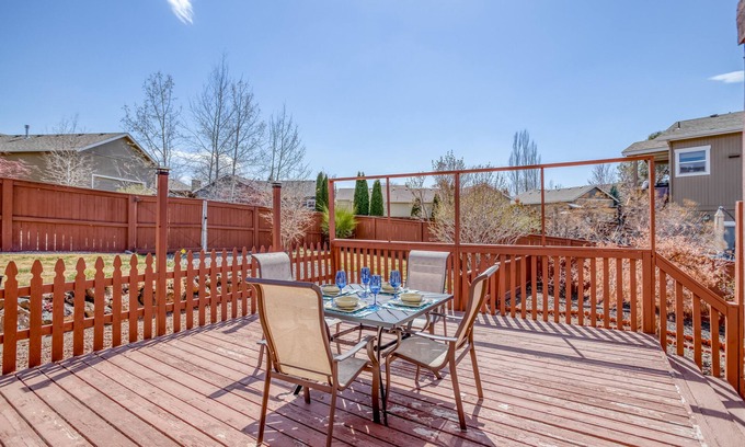 With three bedrooms, a gas fireplace, outdoor deck and a gourmet kitchen, this home is set up to offer you all the comforts you might want, no matter what type of vacation you are looking for. The large garage and backyard space can hold your ski gear or kayaks and paddle boards, depending on the season. The expansive back deck is the perfect place to relax after a long day of activity. The kids in your group can enjoy the Smart TV downstairs and the games provided for guest use. And when it’s time to eat, the large kitchen is fully equipped for you to cook nice dinner. If cooking isn’t your thing on vacation, use the kitchen to store take-out from one of Bend’s popular restaurants located within a few short miles of the home.