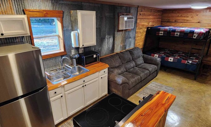 Experience this Veteran owned Hunters & Heroes Hideaway in the Monroe countryside. Located directly in front of the historic Wham Brake hunting area and boat ramp, this charming rustic barn studio apartment has everything you will need to enjoy the Louisiana sportsman's paradise that surrounds. Featuring a comfortable adult full over queen bunk bed, new appliances, couch, TV, & DVD. The full kitchen has everything you need to cook your favorites after a long day of hunting and fishing. AC, heat, and WiFi amenities provided. The bathroom includes a hair dryer and selection of soaps for your convenience. Hunting and service dogs are always welcome. Be sure to ask about our mission to provide fishing and hunting opportunities for our Nation's Heroes.