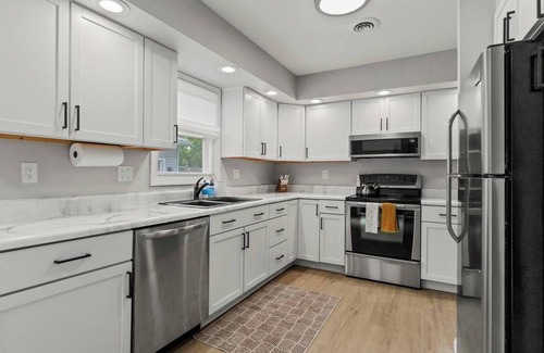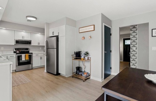 Welcome to the perfect place for families, pets, and groups! Enter through the side door, and walk into the all-white kitchen, pull up a seat in the eat-in kitchen space, or cozy up in the front living room. There is a main floor full bath for your convenience. The master bedroom features a King bed and an on-suite half bath. There are two additional, main-floor queen bedrooms.